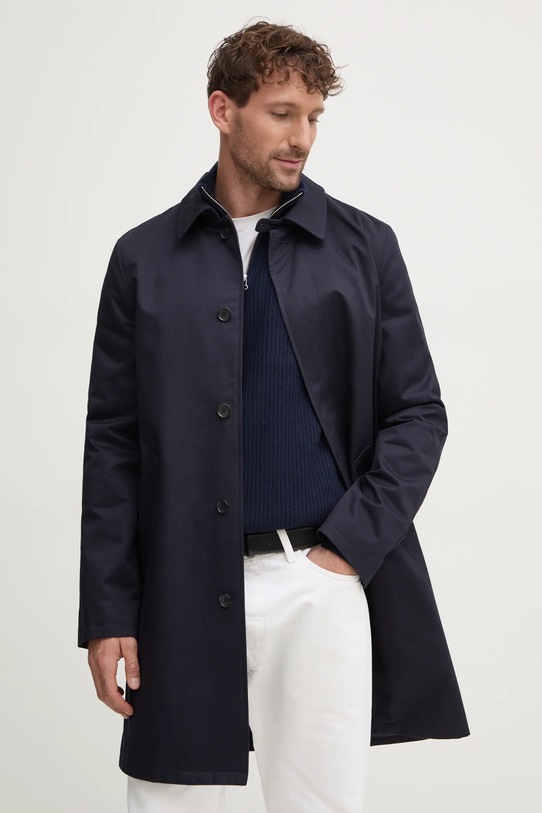 Плащ из коллекции A.P.C. Неутепленая модель выполнена из гладкой ткани. Модель из дышащего хлопкового материала.