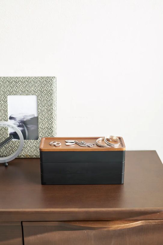 - Состоит из 3-х частей; включает перегородки, которые можно свободно расположить, и крышку.